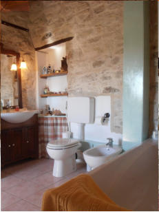 Gallery - click on the photographs below to enlarge il sorger del sole was constructed with two-metre-thick stone walls sometime during the late 1600’s early 1700’s in the former hamlet of St. Georges’ Hill and was enlarged as families grew. Gated access to the entrance drive and courtyard is from a council maintained white road. Comprising some 230 m² (2475 ft²) it has been lovingly restored to retain its original charm. A considerable part of the farmhouse has exposed stonework, hand made oak doors; hand hewed oak beams, hand made ceiling tiles etcetera. It has terracotta roof tiles, copper guttering and double glazed windows. The spacious accommodation comprises: ground floor with two bedrooms with independent entrances, private bathrooms and an additional room which could be converted into a further en-suite bedroom, under stair storage room, bread oven which could be re-used and single garage. Ancient stone steps with loggia lead to the first floor with lounge, bedroom with en-suite bathroom/utility room and a large open plan kitchen/dining area. Wooden stairs rise to the second floor with office and galleried bedroom.