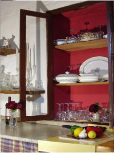 Gallery - click on the photographs below to enlarge il sorger del sole was constructed with two-metre-thick stone walls sometime during the late 1600’s early 1700’s in the former hamlet of St. Georges’ Hill and was enlarged as families grew. Gated access to the entrance drive and courtyard is from a council maintained white road. Comprising some 230 m² (2475 ft²) it has been lovingly restored to retain its original charm. A considerable part of the farmhouse has exposed stonework, hand made oak doors; hand hewed oak beams, hand made ceiling tiles etcetera. It has terracotta roof tiles, copper guttering and double glazed windows. The spacious accommodation comprises: ground floor with two bedrooms with independent entrances, private bathrooms and an additional room which could be converted into a further en-suite bedroom, under stair storage room, bread oven which could be re- used and single garage. Ancient stone steps with loggia lead to the first floor with lounge, bedroom with en-suite bathroom/utility room and a large open plan kitchen/dining area. Wooden stairs rise to the second floor with office and galleried bedroom.
